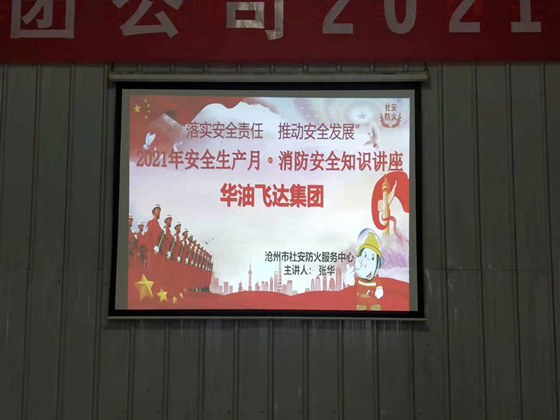 2021年6月9日消防部門人員觀摩華油飛達(dá)集團(tuán)組織的消防應(yīng)急救援演練。組長曹利軍主持此次演練。滄州市社安防火服務(wù)中心的張老師對(duì)大家就消防安全知識(shí)進(jìn)行了培訓(xùn)和指導(dǎo)。