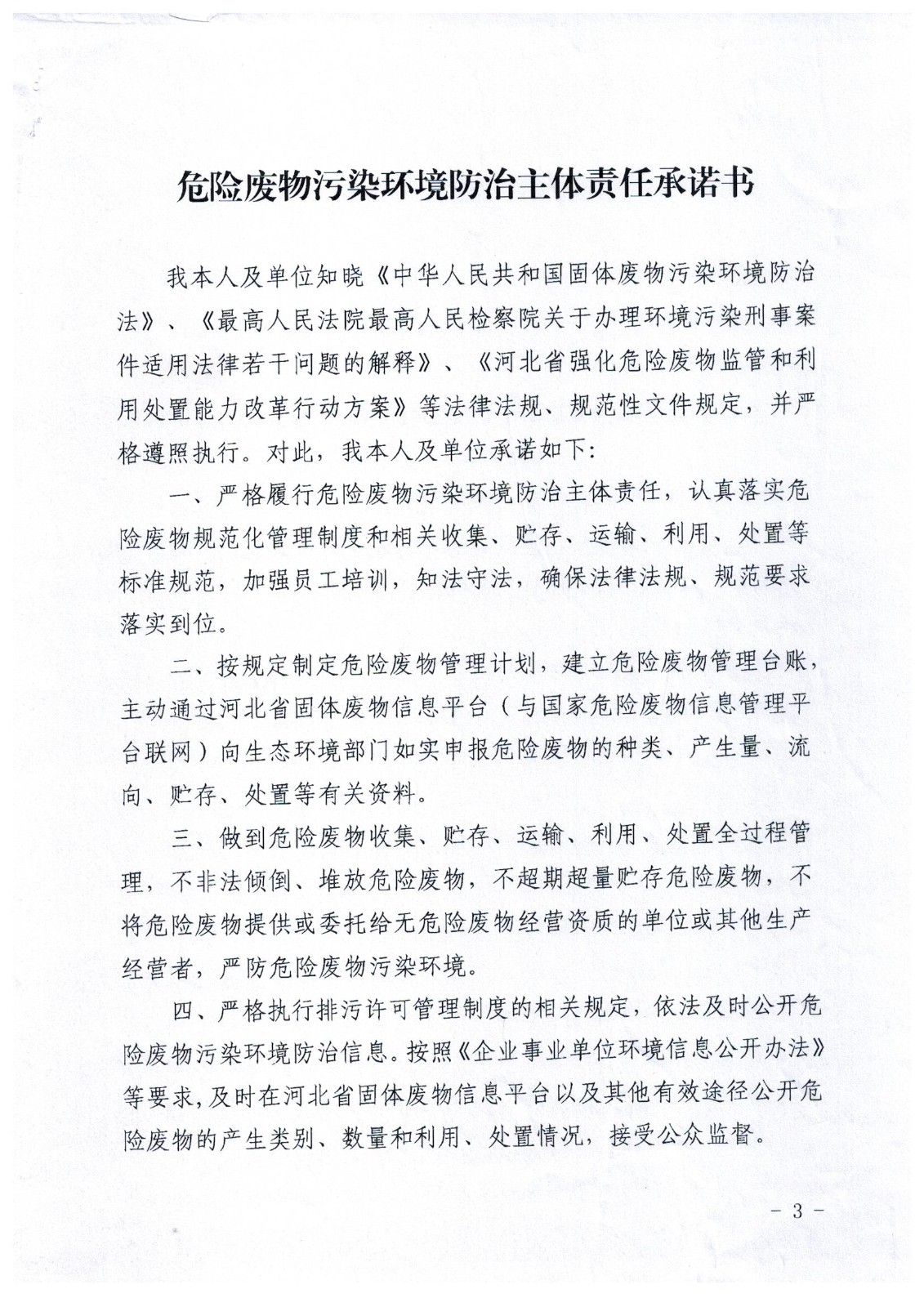 2023年1月3日危險廢物污染環(huán)境防治主體責任承諾書