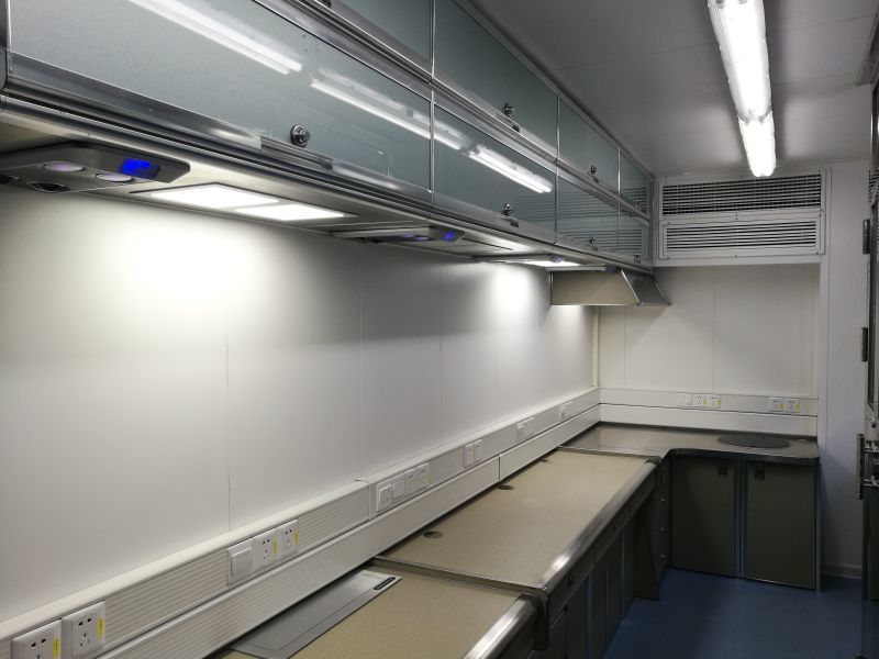 :鋼結構焊制的集裝箱式營房,房體承重能力強,吊裝運輸不變形。與普通野營房相比,該營房防火級別要求高,室內裝修選用檔次